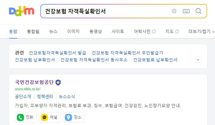 포털사이트에서 건강보험자격득실확인서(www.nhis.or.kr)라고 입력을 합니다.