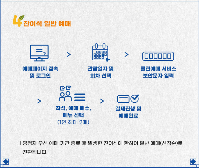 ④ 잔여석 일반예매 : 2025. 4. 9. (수) 14:00 ~ 4. 15. (화)