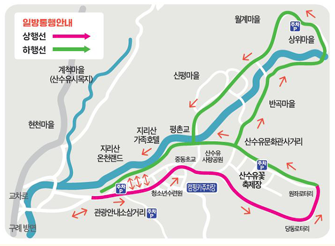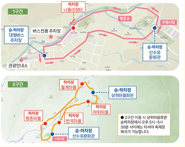 원좌로터리 → 산수유문화관 → 반곡 → 상위 → 평촌교 → 관광안내소