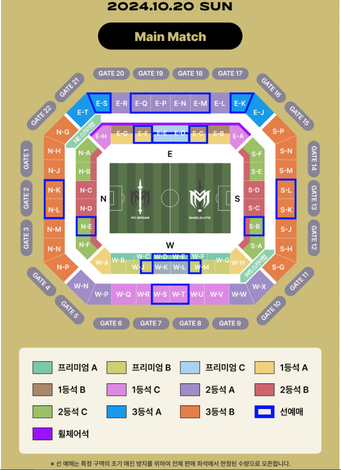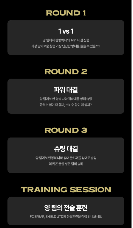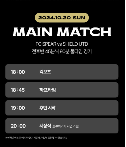 | 10월 20일 18:00 | 2024 아이콘 매치 : 창과방패 -FC SPEAR vs SHIELD UTD | 서울월드컵경기장 |