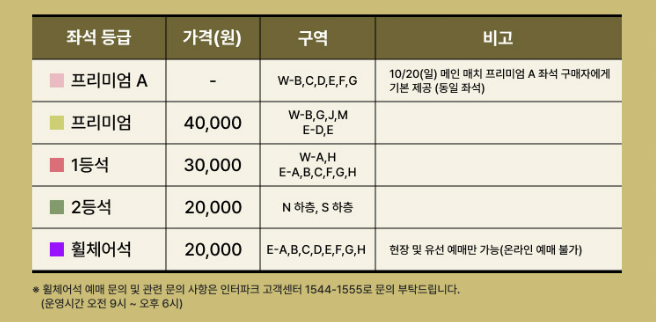 | 선예매 티켓 오픈 | 9월 26일(목) 낮 12시 ~ 오후 11시 59분 | - 선예매 인증을 완료한 인원대상 예매 가능 |