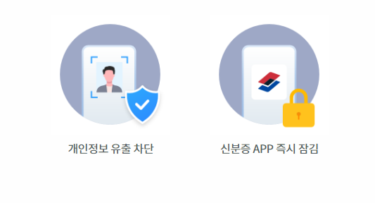 도난 분실 시 즉시 모바일 신분증 잠근 상태로 전환되어 타인으로부터 정보노출을 차단합니다.