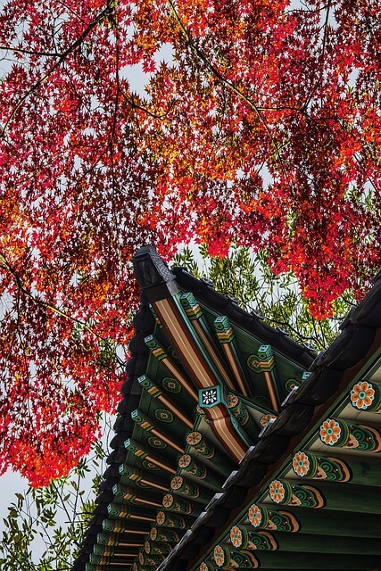 - 가을: 단풍이 물든 궁궐은 고즈넉한 아름다움을 선사합니다.