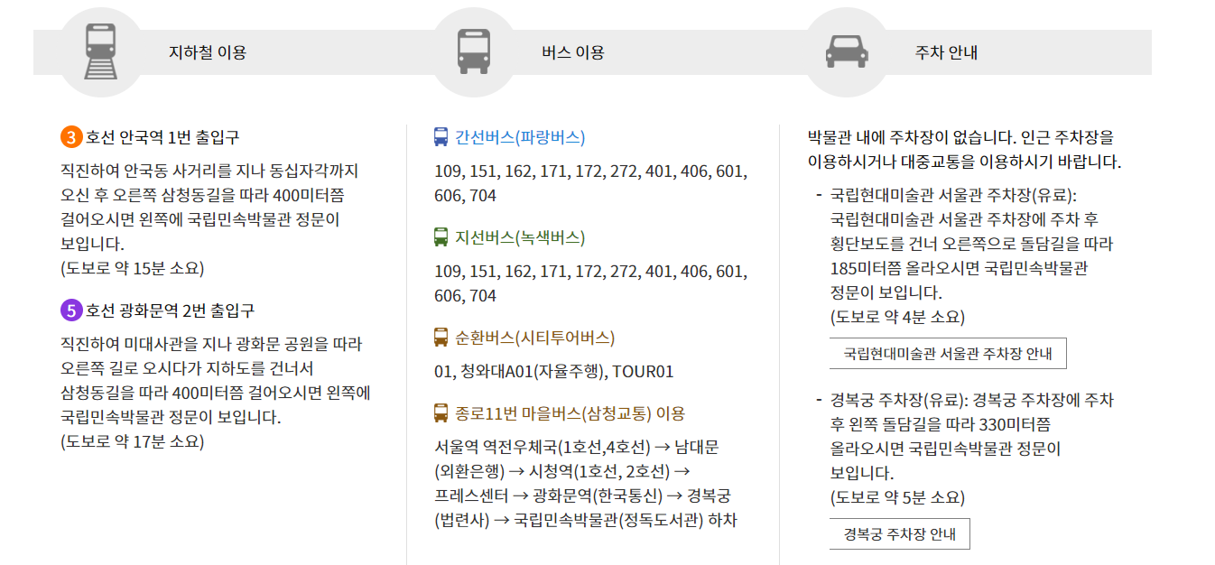① 지하철 3호선 안국역 3번 출구 → 도보 10분