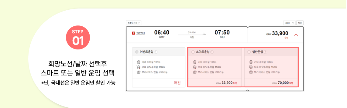 | 국내선 | 25% | 일반운임 왕복 예매시 |