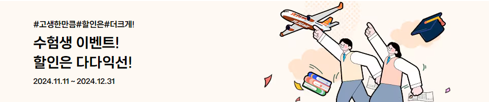수능시험 끝나고 여행을 계획 중이라면 항공사들의 수험생을 대상으로 한 수험생 할인을 실시하고 있으니 아래에서 확인 후 저렴한 가격으로 [수험생 항공사 할인] 혜택을 받아보세요.