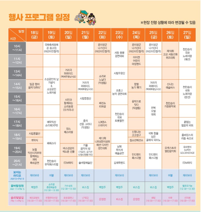 1. 축제기간 : 2024년 10월 18일(금) ~ 10월 27일(일)