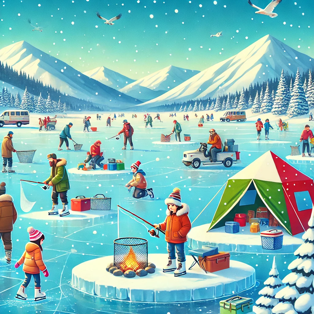 "겨울철 얼음 위에서 빙어와 송어를 낚으며 즐기는 겨울 축제!" 빙어 & 송어 축제는 겨울철 강과 호수가 얼어붙은 후 얼음 구멍을 뚫어 빙어와 송어를 낚는 겨울 낚시 축제입니다. 낚시뿐만 아니
