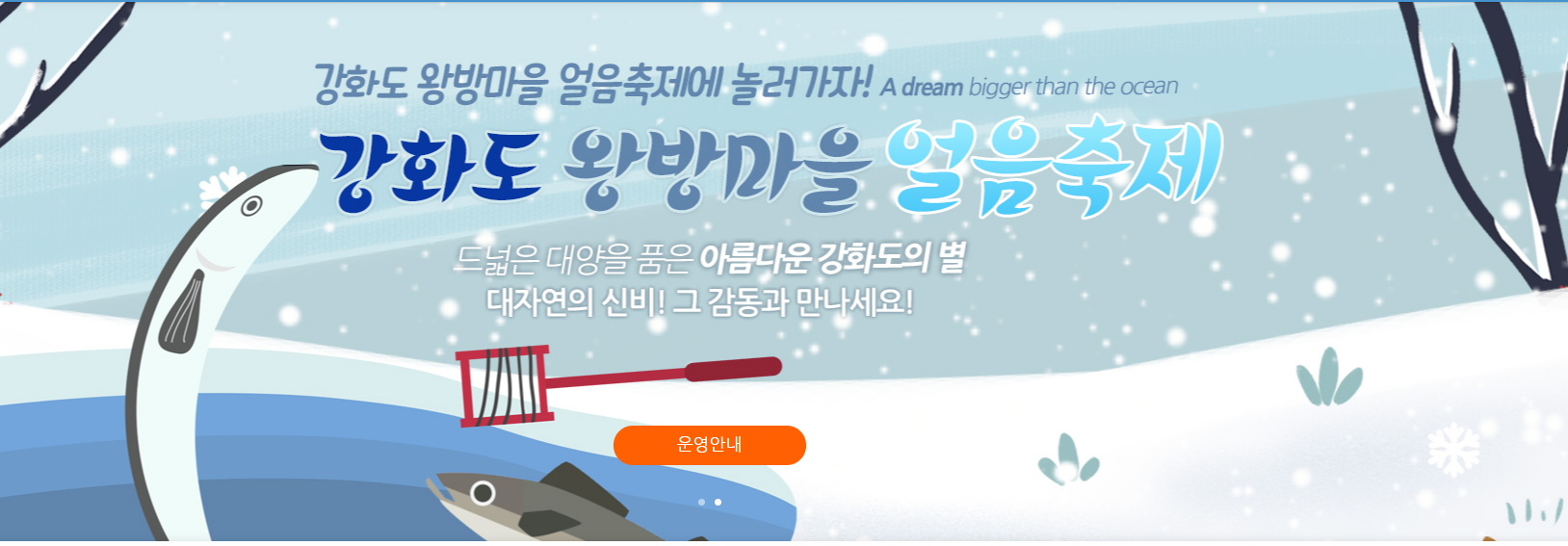 "강화도에서 겨울철 빙어 얼음낚시와 다양한 체험을 즐겨보세요!" 강화 왕방마을 얼음축제는 인천 강화군에서 열리는 대표적인 겨울 축제로, 빙어 얼음낚시뿐만 아니라 눈썰매, 얼음썰매, ATV, 전통놀이, 먹거리 체험 등 온 가족이 함께 즐길 수 있는 다채로운 프로그램이 마련되어 있어요. 서울 & 수도권에서 가까워 당일치기 여행으로도 딱 좋은 곳!