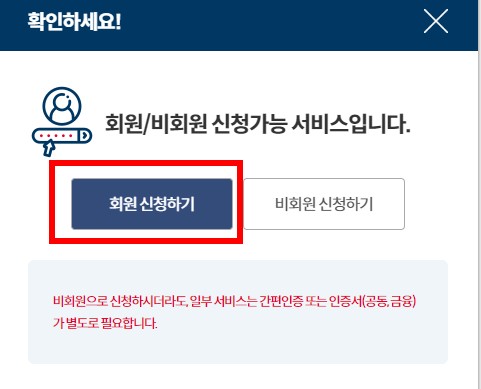 다음 화면이 나오면 회원신청하기를 클릭합니다.