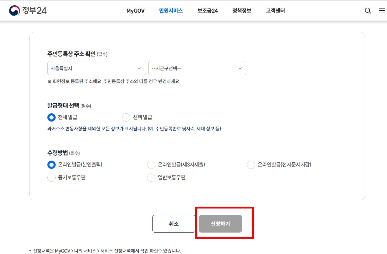 이러한 방법으로 정부24에서 주민등록등본을 발급하시면 됩니다.