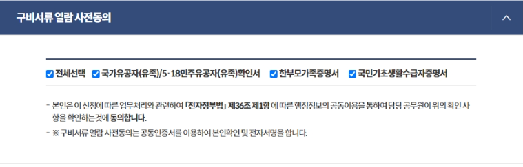 ※ 담당공무원확인, 본인정보 제공 요구사항은 본인이 행정정보공동이용에 동의하지 않은 경우 직접 제출해야 합니다.
