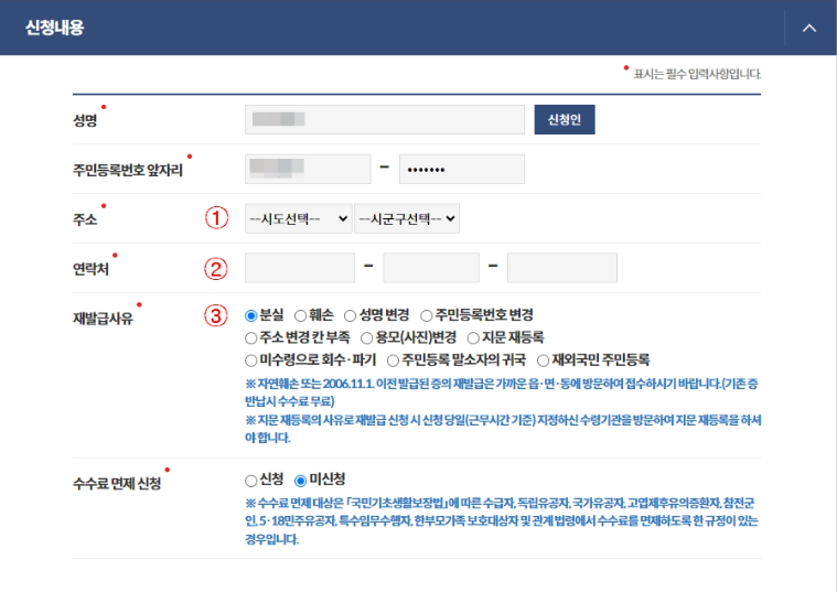 3. 주민등록증은 본인이 직접 재발급을 신청하여야 합니다.