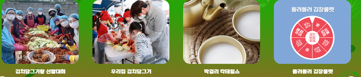 | 13:40~14:00 | 김장담그기왕 선발대회 | 13:40~14:00 | 김장담그기왕 선발대회 | ||