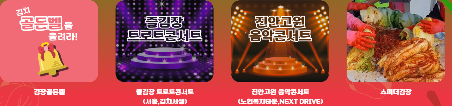 | 14:30~16:00 | 즐김장 트로트콘서트 (서윤, 김치서생) |