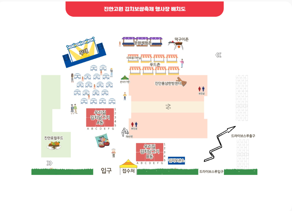 진안 김치보쌈축제 행사장 안내도 및 배치도입니다.