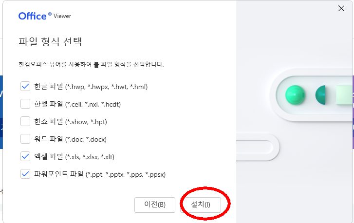 저는 한글파일, 엑셀파일, 파워포인트파일이 필요해서 선택을 했습니다.