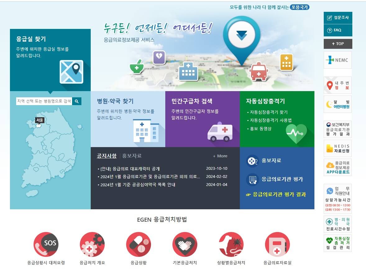 2024년 설 연휴가 2월 9일부터 2월 12일까지 인데요. 가족과 함께 즐거운 설 명절을 보내실 텐데, 설 연휴기간 동안 응급환자가 발생을 하지 않으면 좋겠지만 뜻하지 않게 응급환자가 발생한다면 정말 난처한데요. 오늘은 연휴기간 동안 진료 중인 응급실이나 우리 동네의 병원, 약국을 찾는 방법에 대해 알아볼까 합니다.